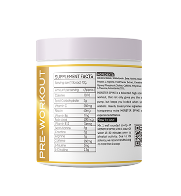 - Monster Spyke provides you with a proven combination of potent ingredients that will keep your energy levels spiked as you power through your workout.